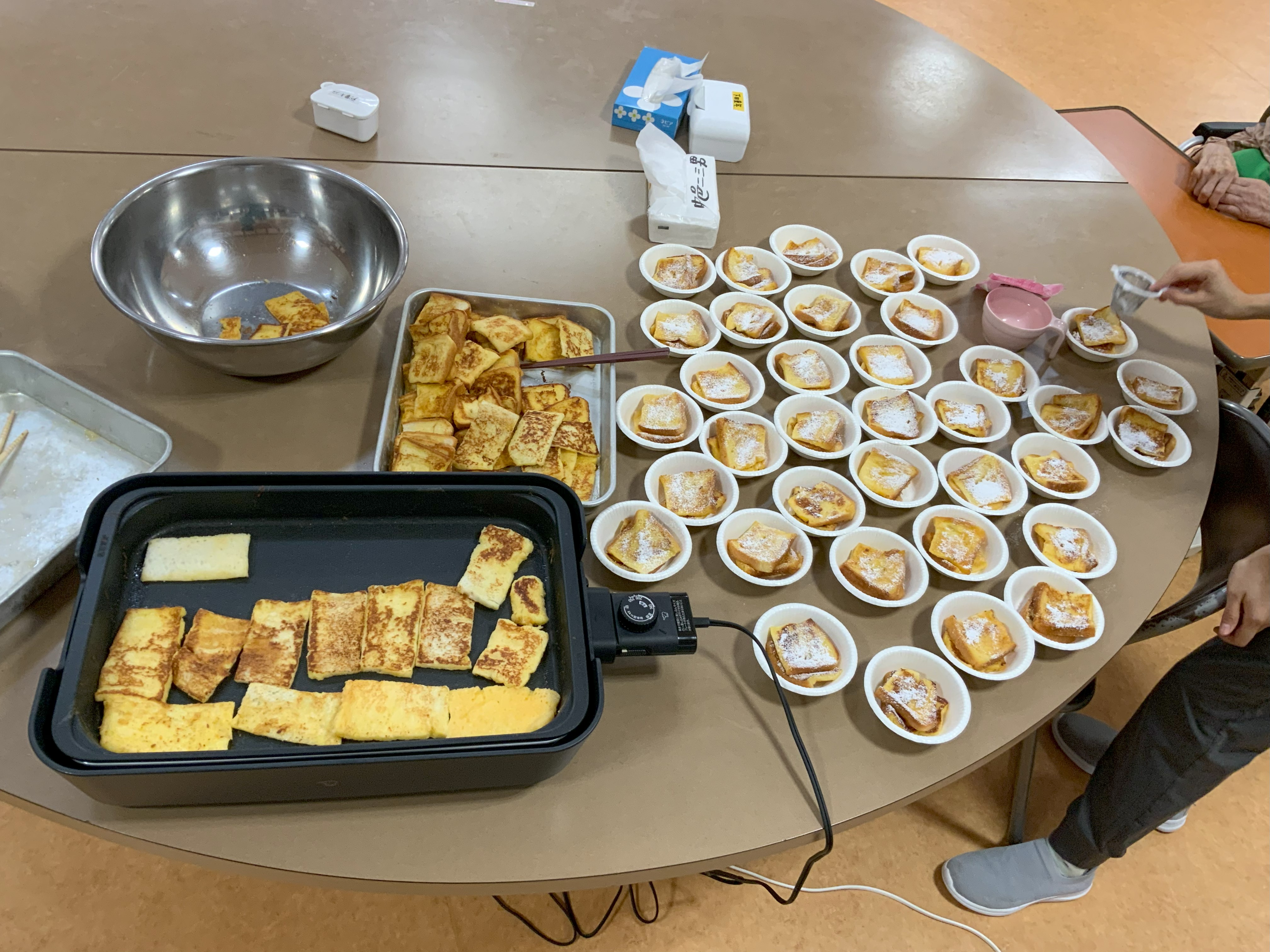 8月には手作りおやつとして「フレンチトースト」を提供しました。皆さん、美味しそうにお召し上がりになられました。