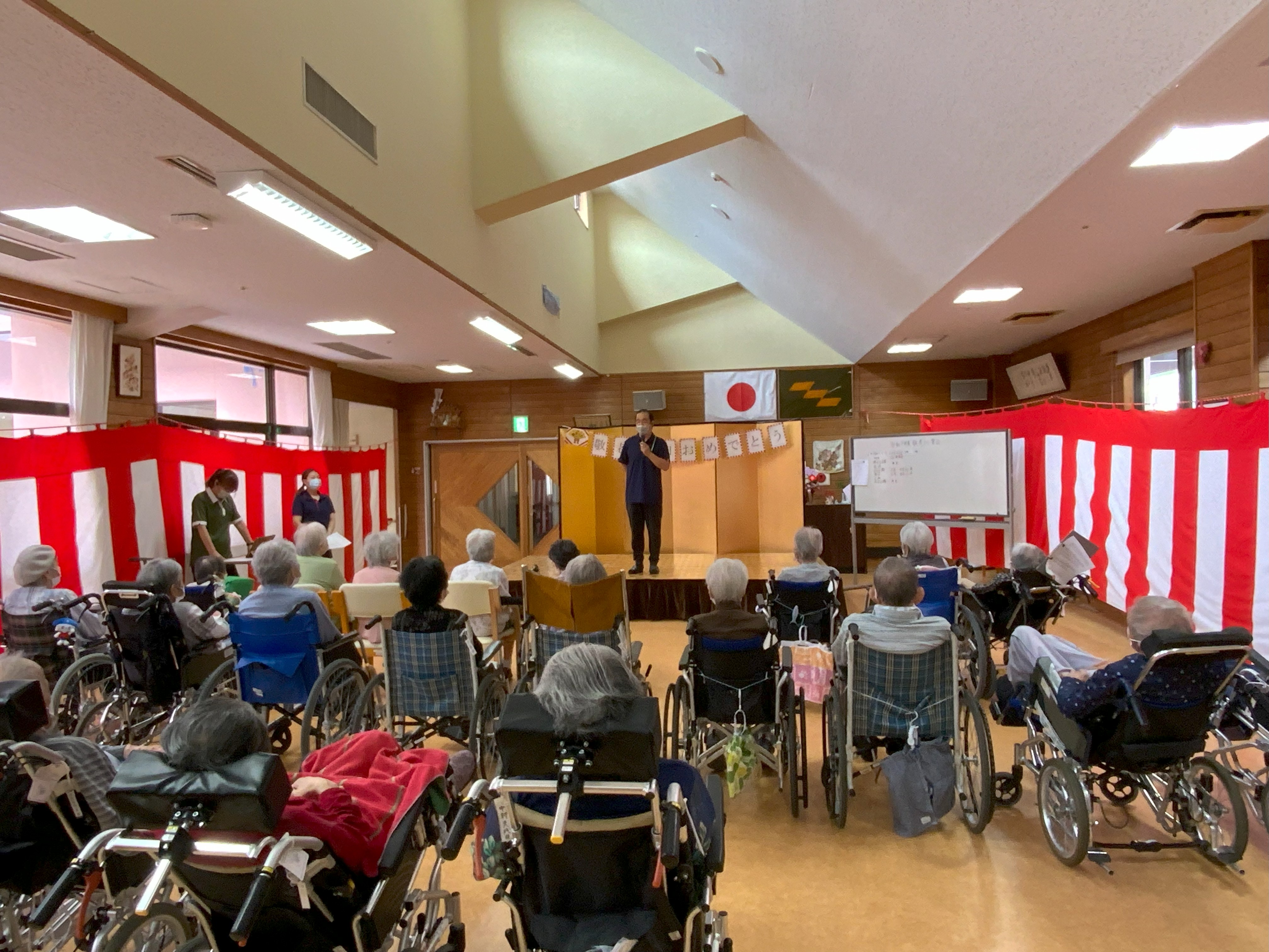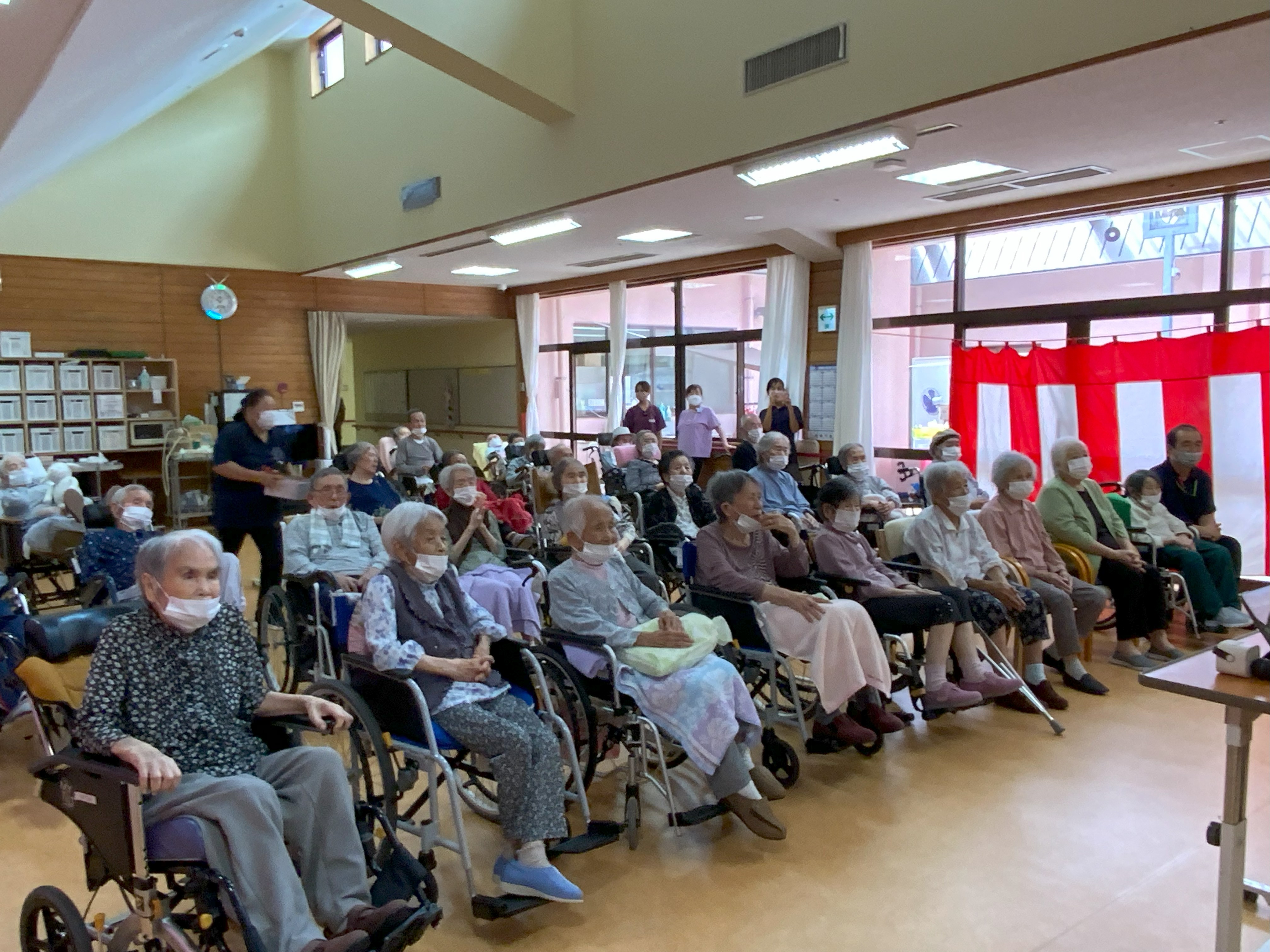 皆さんコンニチハm(_ _)m 今回は令和7年度に執り行いました敬老祝賀会の様子についてご報告致します。この度の開催も感染症予防の観点から小規模でのお祝いとなりましたが、職員が試行錯誤して盛り上げましたのでご紹介します。