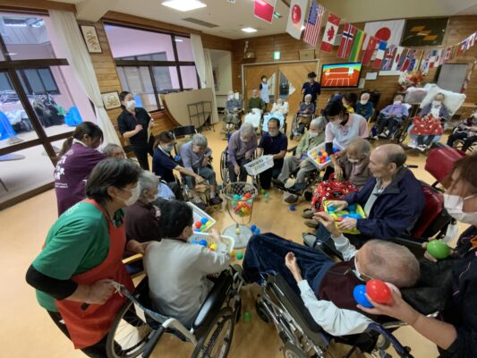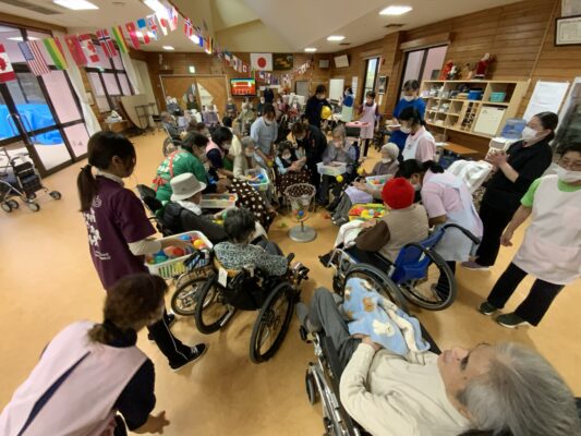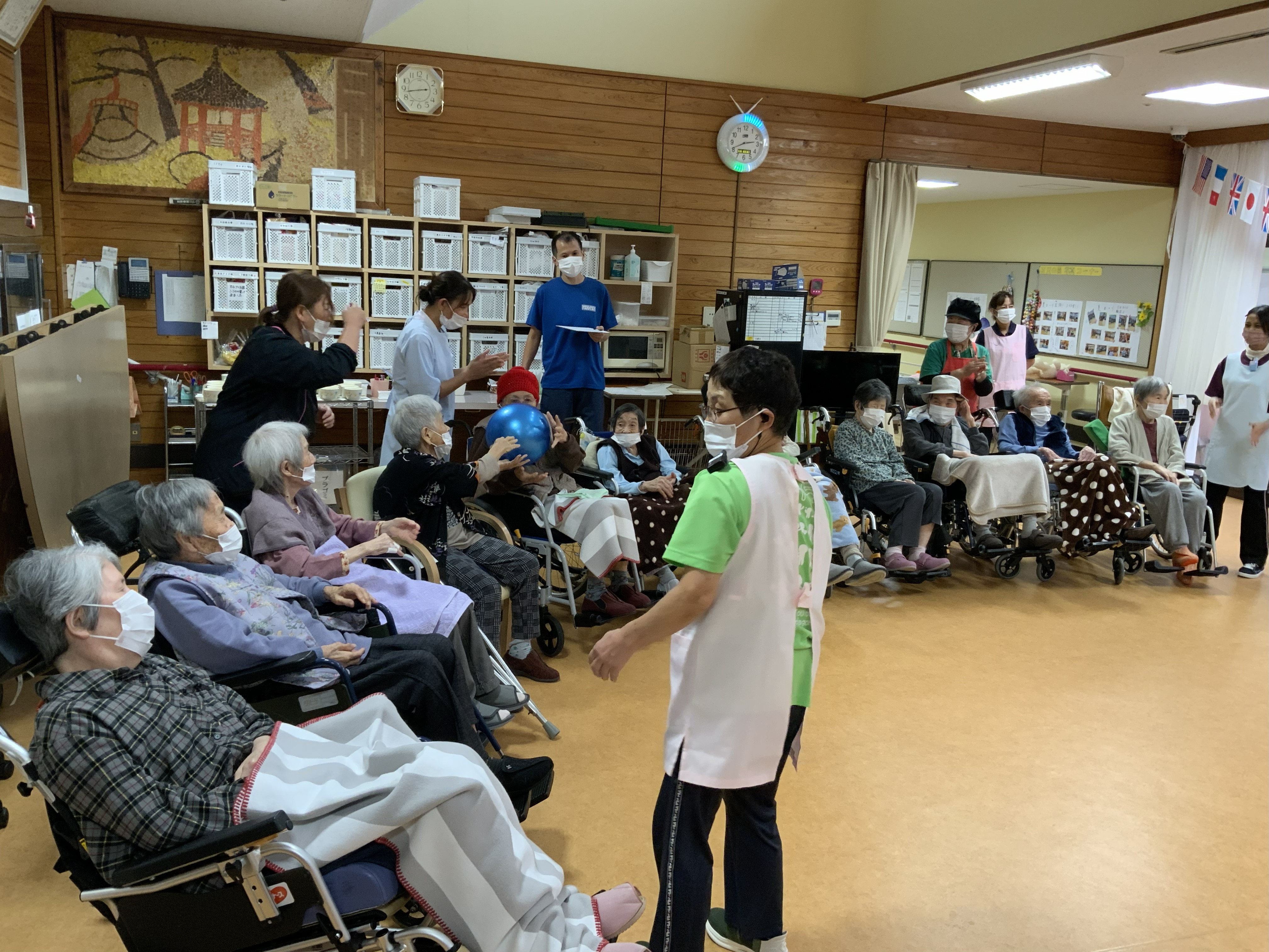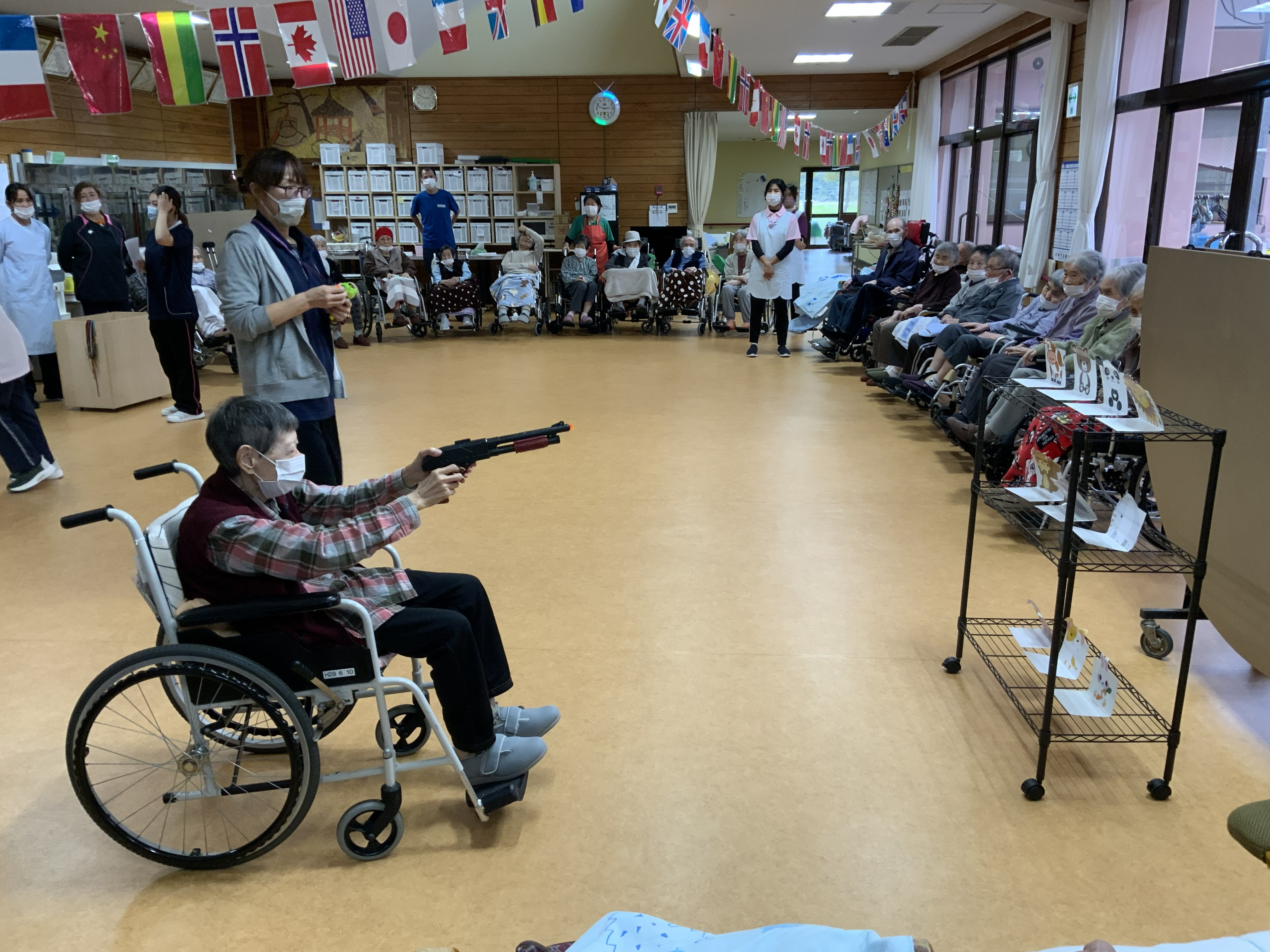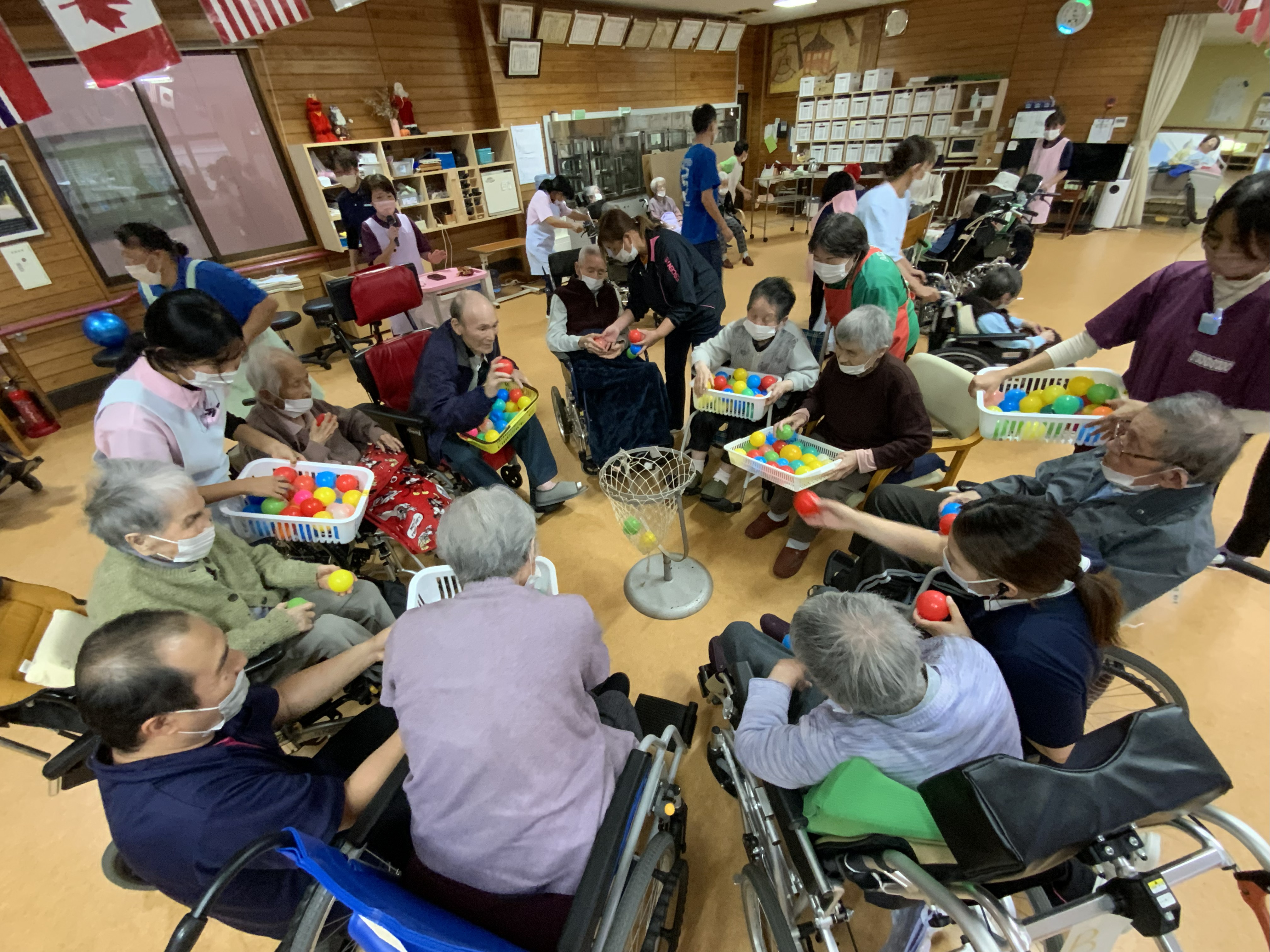 最後は「玉入れ競争」です。あまりの白熱にフライングやオーバーランをする入所者が続出しました。不正は適宜取り締まっております。