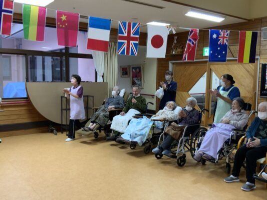 この度はレクリエーション大会を開催したので報告致します。はじめに園長から開会宣言が述べられルール説明が行われました。入所者の皆さん真剣です。
