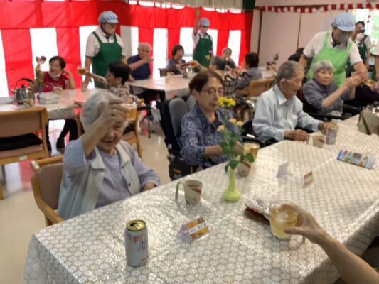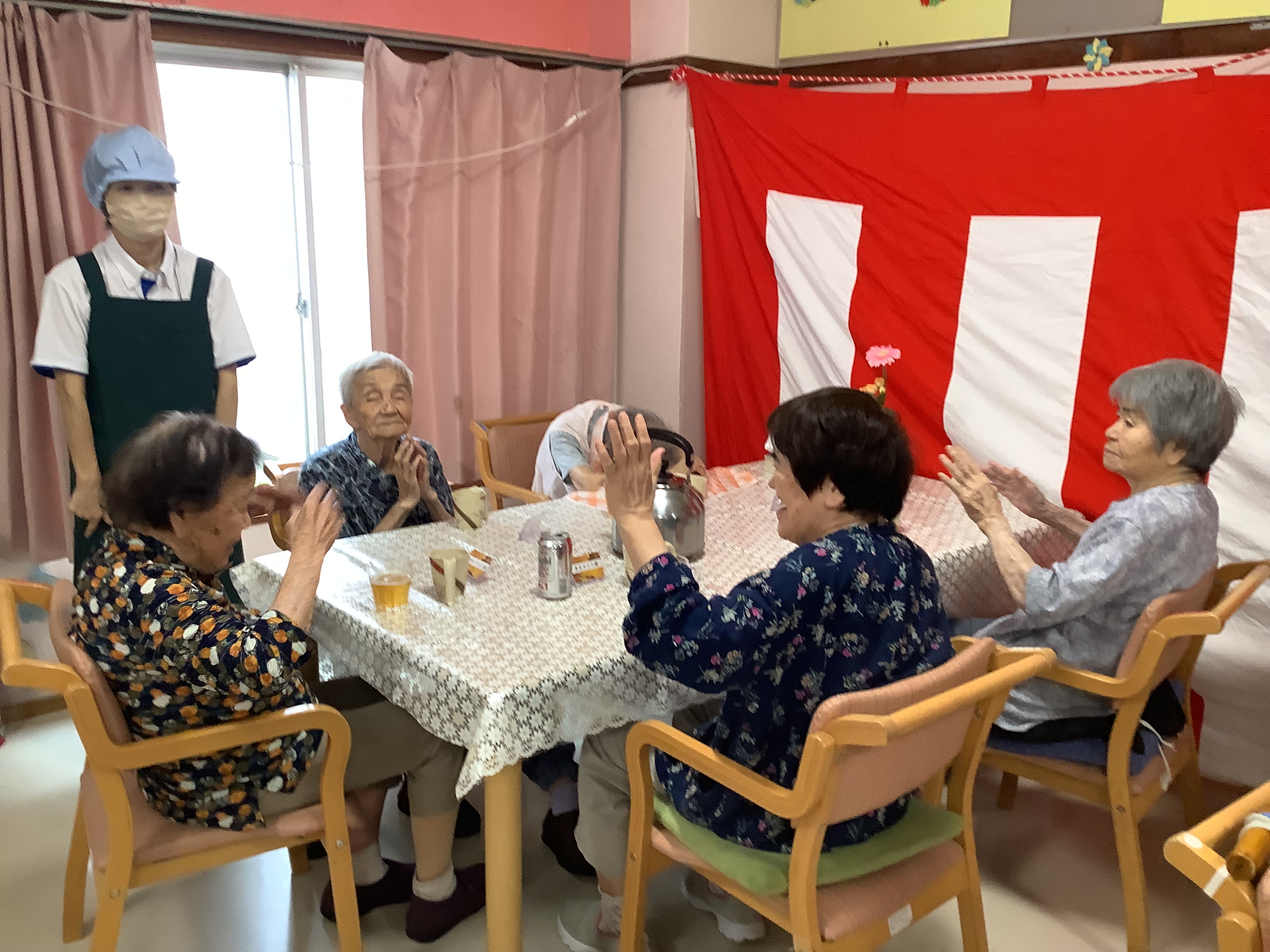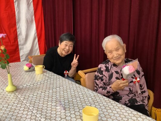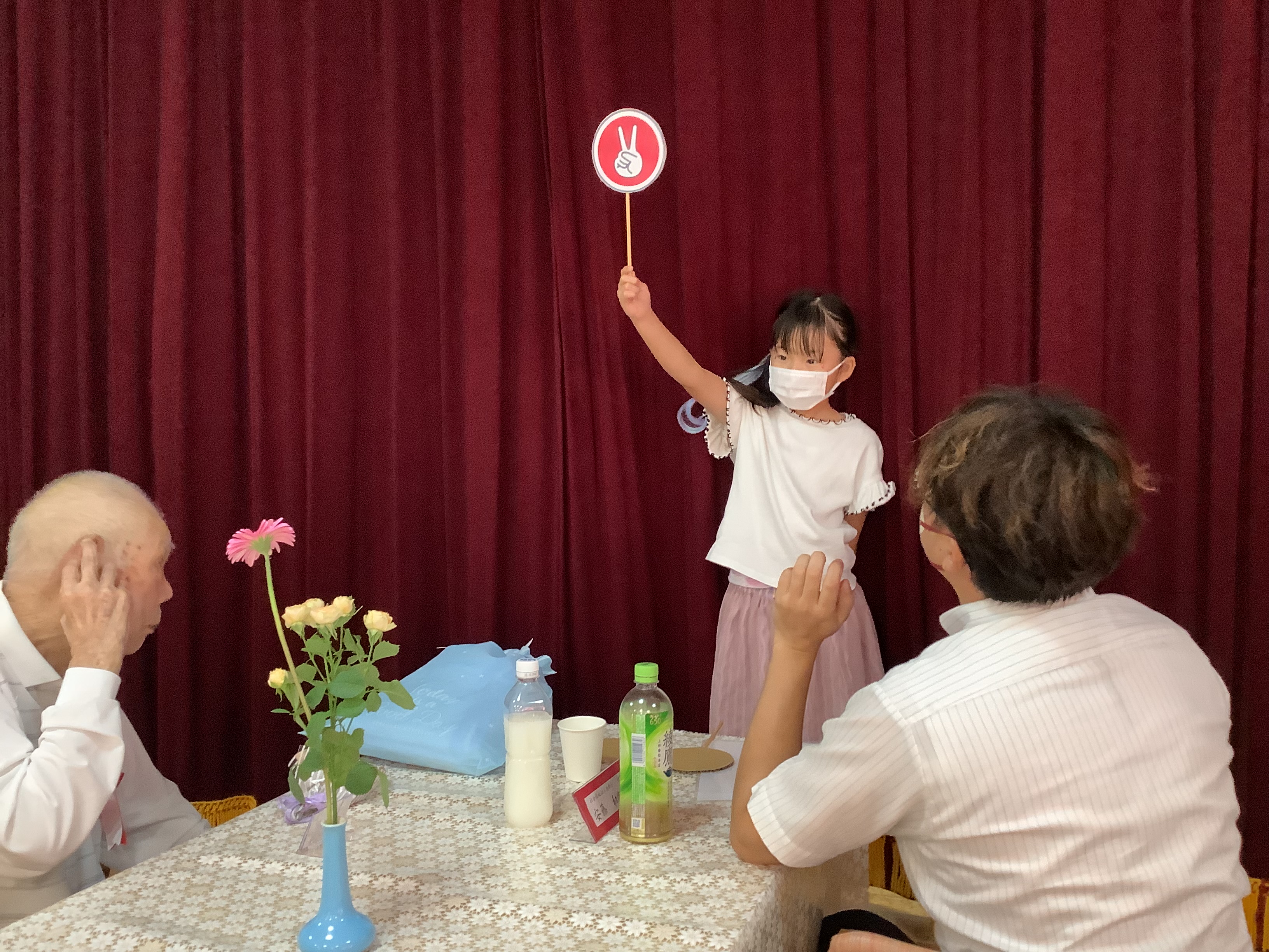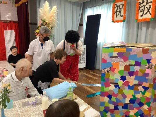 まずは職員から手作りブーケのプレゼント(^^)/ 利用者様、本当におめでとうございます。 ~じゃんけん大会~ 本部長の娘さんがお手伝いしてくれました(^^)/