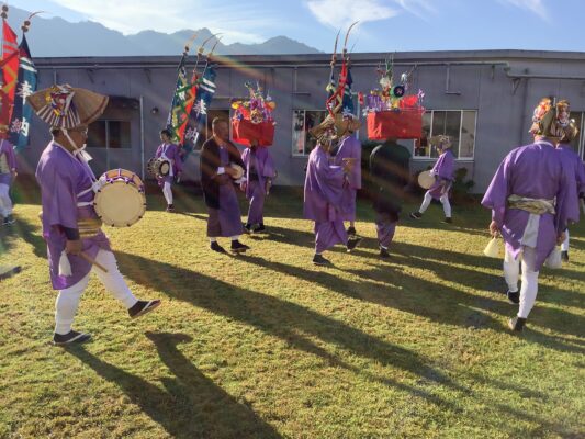 鶴の内(地区名)のお祭りで今年も臼太鼓を踊って頂きました